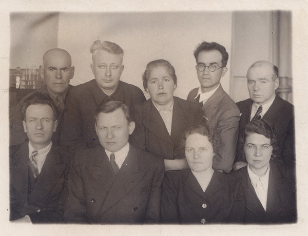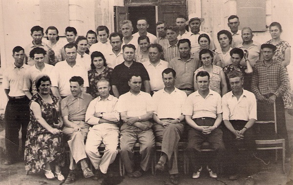 1946 г. К.М. Липин – один из директоров Института (сидит 3-й слева) с работниками Приволжской биофабрики