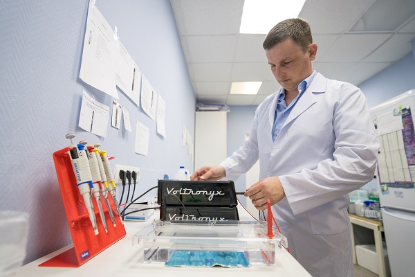 Артем Бригида за работой в лаборатории молекулярных биотехнологий Института инновационных биотехнологий в животноводстве / фото: Александр Плонский / «ВиЖ»
