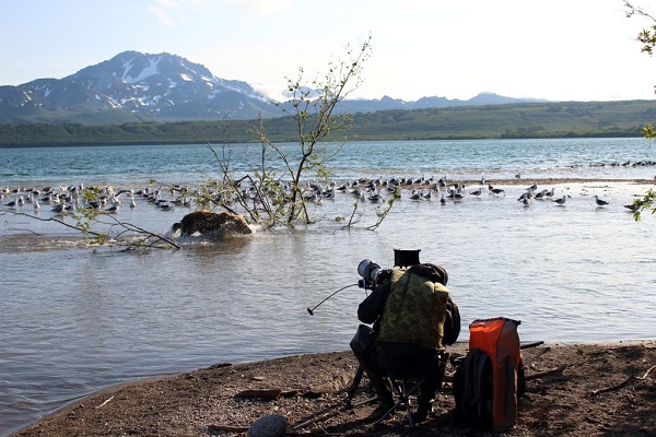 там невысокий, и это дает возможность более-менее спокойно снимать их близко. Если не конкурировать с ними за рыбу, не вести себя вызывающе, не подходить к ним вплотную, не использовать сильных запахов, дезодорантов например, и не есть в их присутствии, можно спокойно их снимать. При всем при этом главное понимать, что мы – гости на их земле. Хозяева они, не мы. Важен настрой человека, потому что зверь чувствует его. Чувствует, созидательная цель у человека или разрушительная. Как бы метафизично это ни звучало, я в это верю.