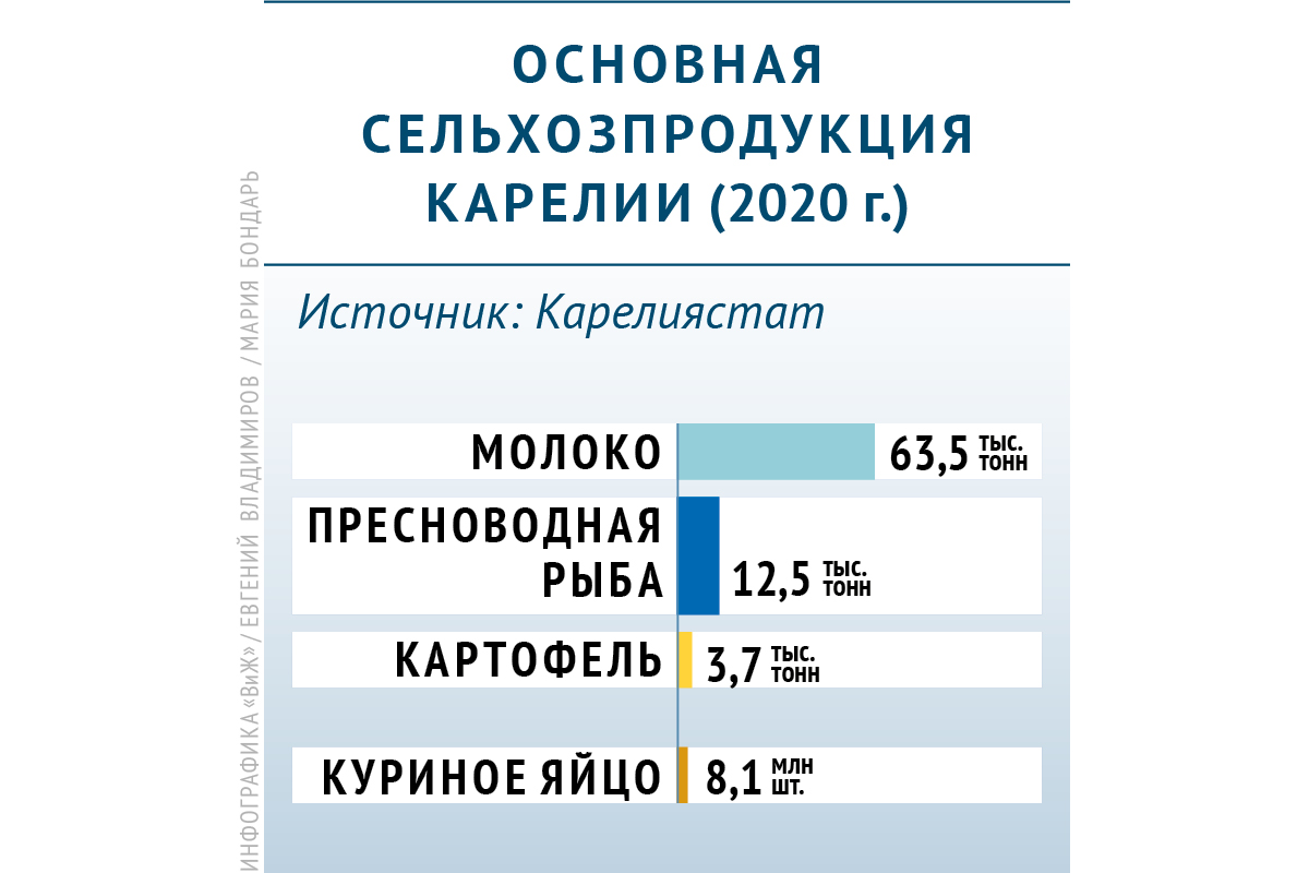 Владимир Лабинов: В целом агропромышленный комплекс Карелии работал и работает стабильно. Спрос на сельскохозяйственную продукцию подрос – и на молоко, и на хлеб, продажи которого на протяжении последних семи лет падали. Но были задержки поставок стройматериалов, комплектующих, проблемы с привлечением строителей и других специалистов из других регионов и стран. В связи с этим многие проекты, запланированные на 2020 год, не состоялись. Объем производства молока остался на уровне предыдущего года. Это связано с тем, что у нас два из десяти хозяйств прекратили существование, притом что остальные хозяйства прибавили надои.