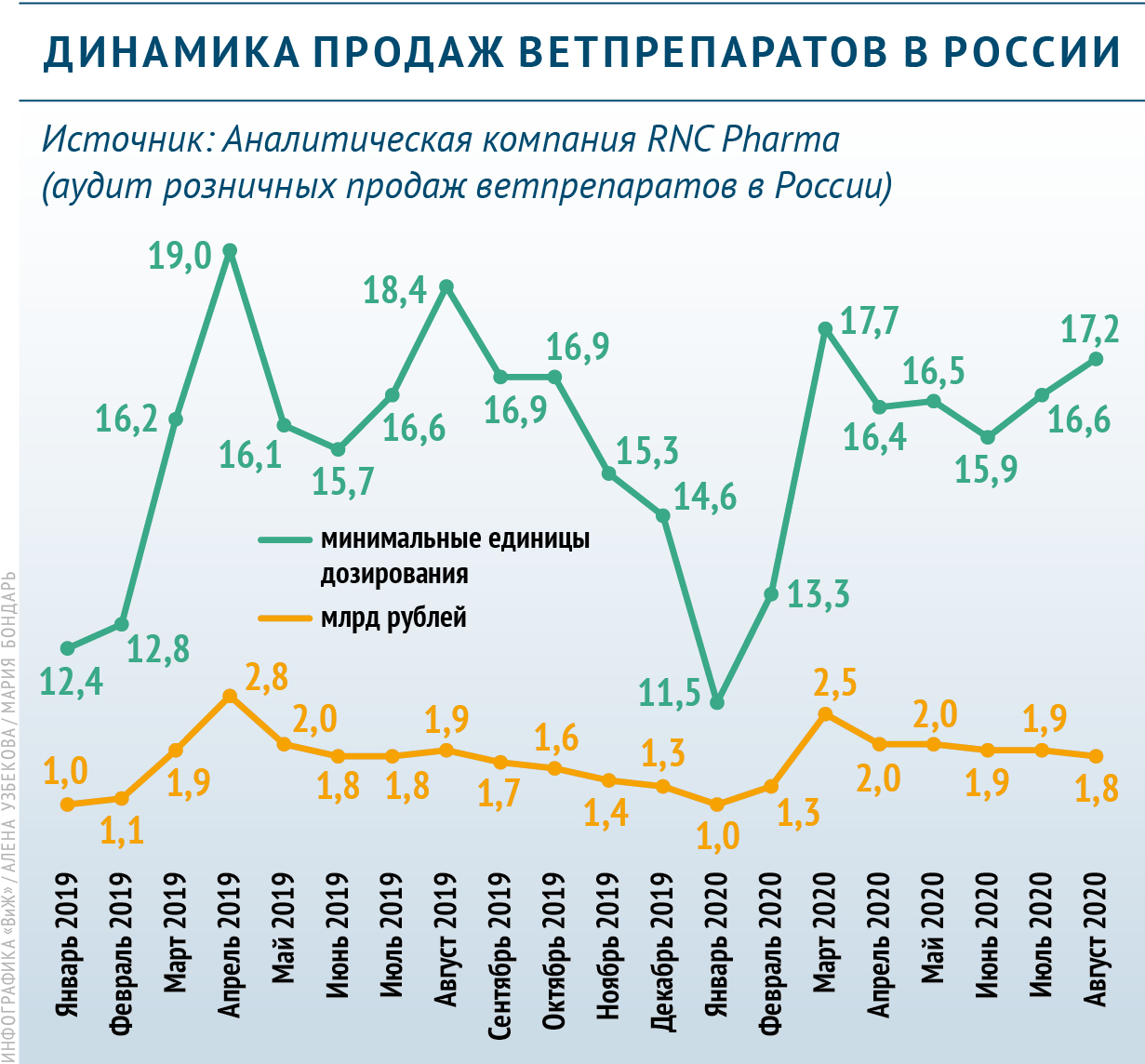 Доля продаж ветпрепаратов в онлайн- и офлайн-сегментах