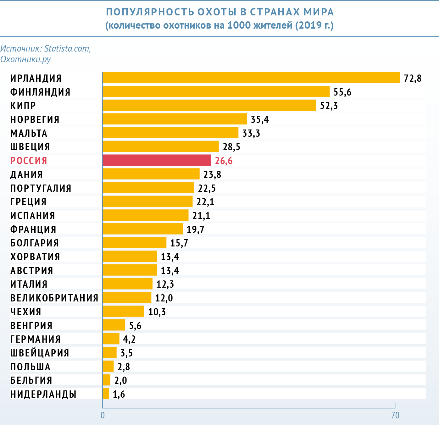 Инфографика «ВиЖ»: популярность охоты в странах ми...