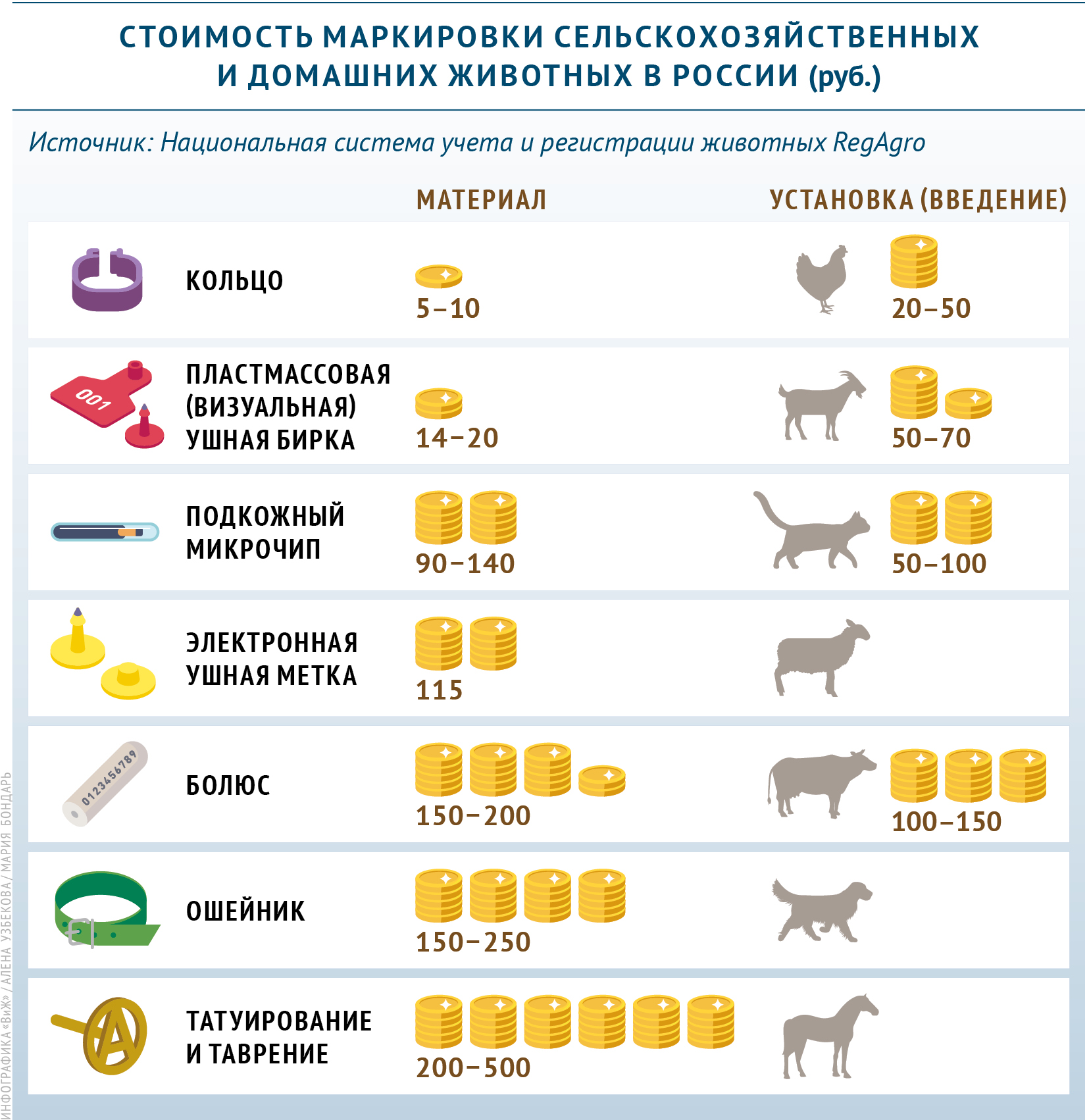 Стоимость маркировки сельскохозяйственных и домашних животных в России