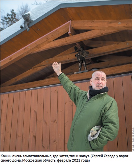 «Когда кто-то не может нас найти, мы всегда говорим: ищите дом с котом на крыше», – рассказывает очаровательная Маруся. Это младшая (ей 13 лет) дочь Сергея Середы и его жены Татьяны. Маленькая скульптура кошки тянет лапу, словно здороваясь, к тем, кто стоит у ворот гостеприимного и очень уютного дома.