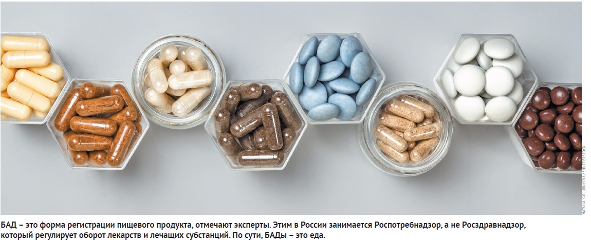 БАДы – это не витамины, которые может выписать врач. Хотя БАДы продаются в аптеках, Роспотребнадзор подчеркивает, что эти препараты относятся к пищевой продукции. В США, Канаде и странах Евросоюза их воспринимают аналогичным образом.