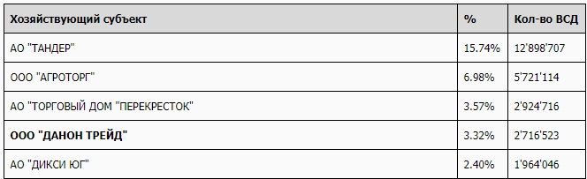 На третьей позиции АО «Торговый дом «Перекресток» – 2,9 миллиона эВСД.