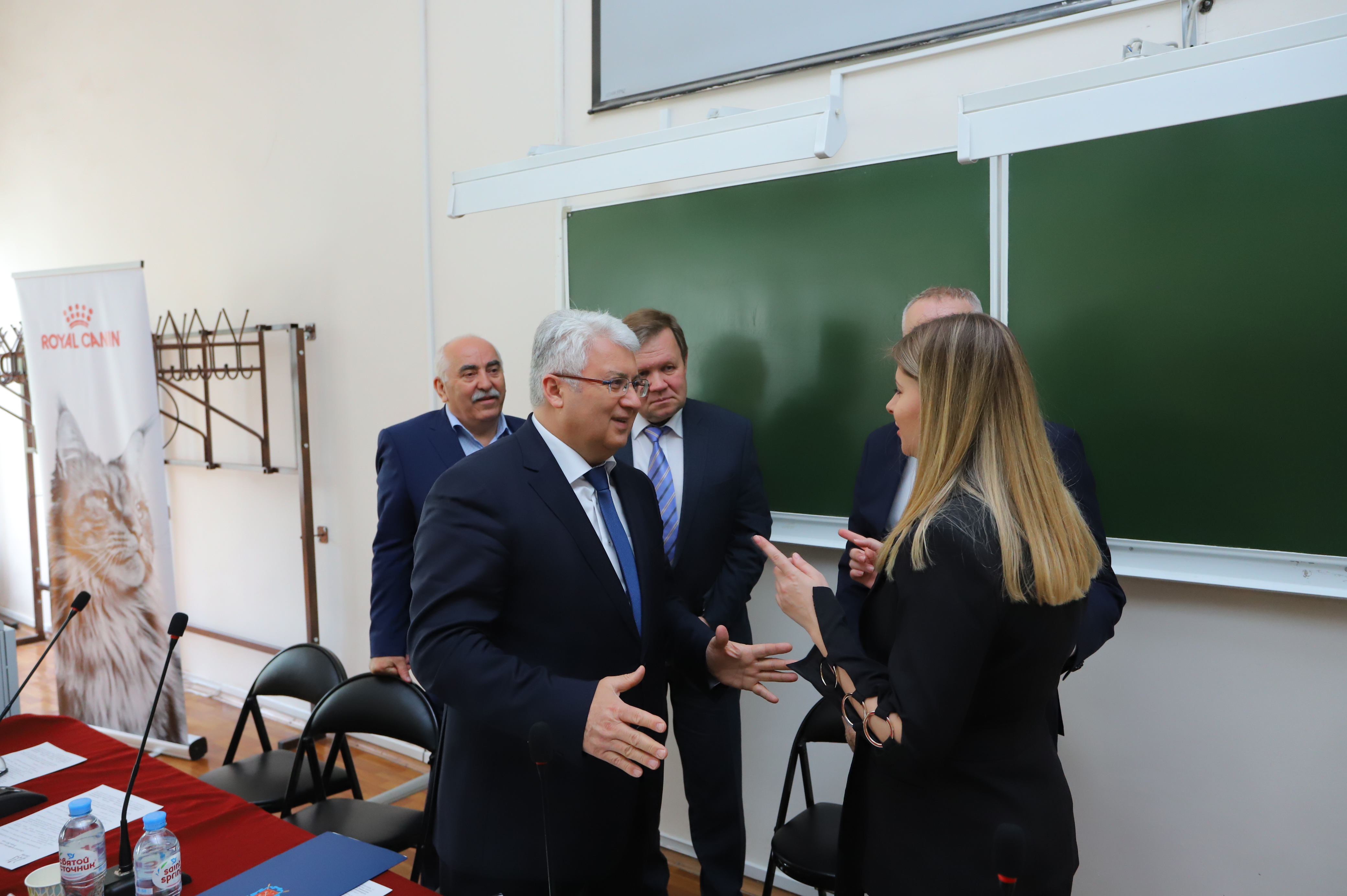 На фото: врио ректора Санкт-Петербургского государственного университета ветеринарной медицины Дмитрий Померанцев и советник Руководителя Россельхонадзора Юлия Мелано