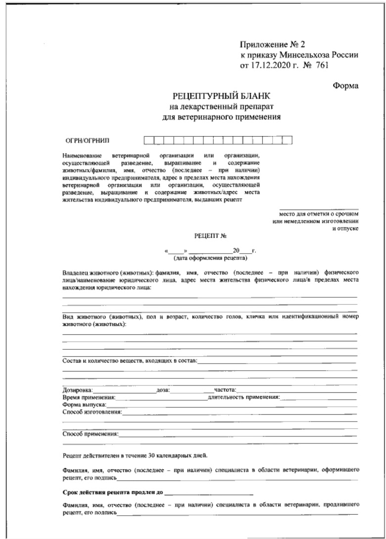 При назначении лекарства аптечного изготовления оформляется рецепт. Его форма утверждена Минсельхозом. Рецепты действительны в течение 30 календарных дней с даты оформления, но для хронически больного животного срок его действия можно будет продлить до года.