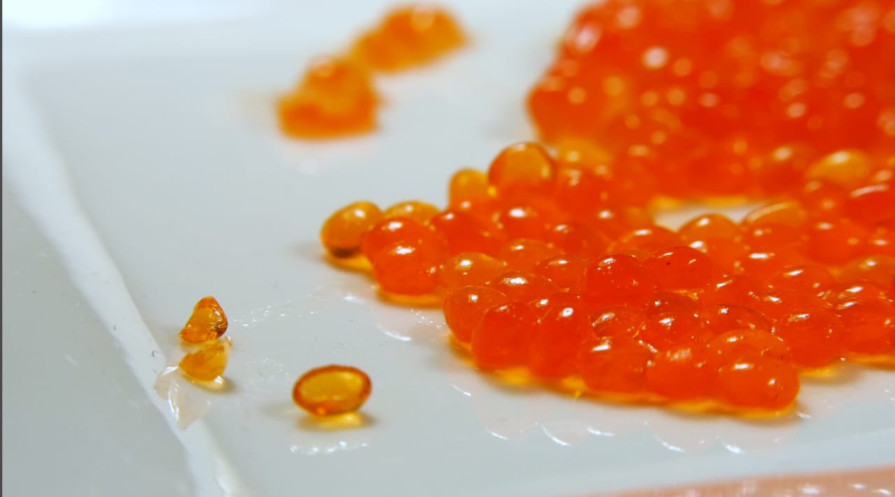Сейчас производители имитированной икры используют в качестве основного сырья экстракты морских водорослей: экстракт красных водорослей – агар-агар и экстракт бурых водорослей – альгинат натрия.